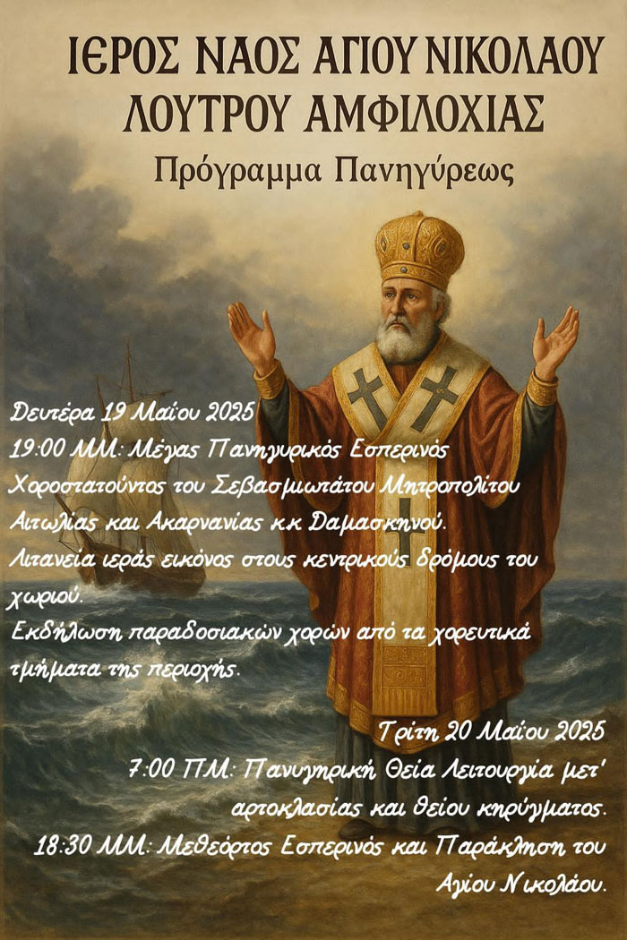 ΑΝΑΚΟΙΝΩΣΗ ΠΑΝΗΓΥΡΕΩΣ ΙΕΡΟΣ ΝΑΟΣ ΑΓΙΟΥ ΝΙΚΟΛΑΟΥ ΛΟΥΤΡΟΥ ΑΜΦΙΛΟΧΙΑΣ