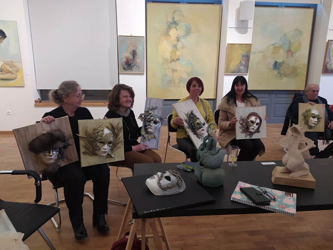 Αντίστοιχα, η εκπαιδευτικός λαογραφίας, Ελένη Καρανικόλα μίλησε στα μέλη της εικαστικής ομάδας για τις αφηγηματικές ιστορίες που μπορούν να αντληθούν και να ταξιδέψουν από τόπο σε τόπο, δημιουργώντας μια μοναδική συλλογή ανθρώπινων εμπειριών και λαϊκής παράδοσης. Ακολούθως, με αφορμή δικά τους δημιουργήματα, τη χρήση περίτεχνων καρναβαλικών μασκών, τα μέλη μπόρεσαν να εκφράσουν προσωπικές σκέψεις και εμπειρίες μέσα σε ένα κλίμα εξομολογητικό και ιδιαίτερα ανθρώπινο. Η δράση αυτή έκλεισε με κεράσματα, τραγούδι και χορό των μελών του Συλλόγου, συμβάλλοντας έτσι στους στόχους του Τομέα Πολιτισμού, την γνήσια έκφραση και την ανθρώπινη επικοινωνία με αφορμή την τέχνη και ευρύτερα τον πολιτισμό.