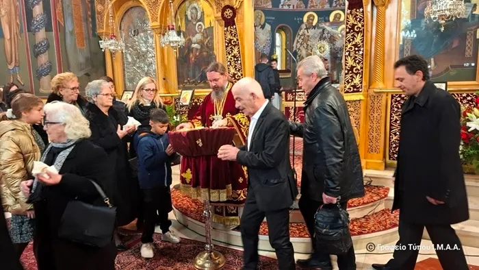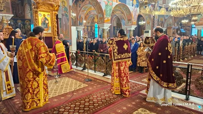 Συλλειτούργησαν οι εφημέριοι του Ναού, Πρωτοπρ. Κωνσταντίνος Καντάνης και Οικον. Γεώργιος Παππάς και οι Διάκονοι π. Δημήτριος Λαγούδης και π. Ιάκωβος Τρομπούκης. Τα ιερά αναλόγια διηκόνησαν χοροί ιεροψαλτών, υπό την διεύθυνση του Πρωτοψάλτου κ. Ανδρέα Αγγελή και του Λαμπαδαρίου κ Πέτρου Καραγιάννη.