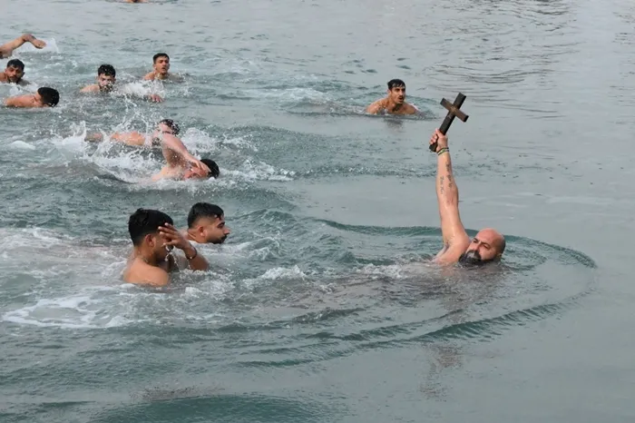 Σύμφωνα με το καθιερωμένο έθιμο, κολυμβητές βούτηξαν στα νερά για την ανάσυρση του Τιμίου Σταυρού, τον οποίο ανέσυρε ο Γιάννης Τσικνιάς, λαμβάνοντας την ευλογία του Σεβασμιωτάτου Μητροπολίτου.