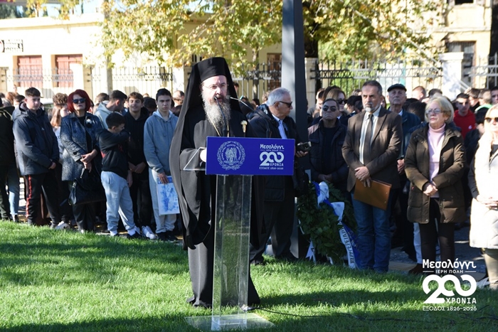 Στον χαιρετισμό του, ο Δήμαρχος Ιεράς Πόλεως Μεσολογγίου, κ. Σπυρίδων Διαμαντόπουλος, ευχαρίστησε θερμά τον Περιφερειάρχη Δυτικής Ελλάδας, κ. Νεκτάριο Φαρμάκη, για την πρωτοβουλία και τη γενναιόδωρη χειρονομία του να δημιουργηθεί ο ανδριάντας. Επίσης, ευχαρίστησε τους συνεργάτες του για την ολοκλήρωση της ανάπλασης της πλατείας Δημογέροντα Χρήστου Καψάλη, επισημαίνοντας ότι η αναβάθμιση της Πύλης και της εισόδου της πόλης δεν περιορίζεται μόνο στο αισθητικό μέρος. Αντιθέτως, αποσκοπεί στη δημιουργία ενός ιστορικού τοπόσημου, που θα συμβολίζει τη θυσία των ηρώων και θα ενισχύει τη συλλογική μνήμη του τόπου, με επιπλέον αναβάθμιση και εξωραϊσμό του χώρου.