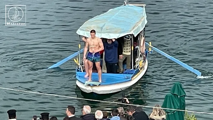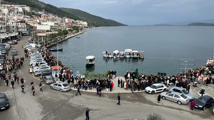 Η τελετή του Αγιασμού των Υδάτων πραγματοποιήθηκε με κάθε επισημότητα, ενώ δέκα νεαρά παιδιά βούτηξαν στα νερά για τον Τίμιο Σταυρό . Τυχερός της ημέρας αναδείχθηκε ο Ορφέας Κατσικοκέρης, ο οποίος έφτασε πρώτος στο σημείο και ανέσυρε τον Σταυρό μέσα σε χειροκροτήματα.