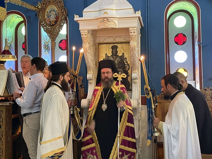 Κατά την ομιλία του εξέφρασε την χαρά και την συγκίνησή του, γιατί αξιώθηκε να τελέσει την πρώτη Αρχιερατική Θεία Λειτουργία στον Ιερό Ναό του χωριού που έζησε και μεγάλωσε.