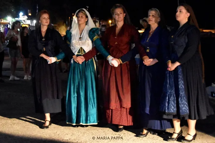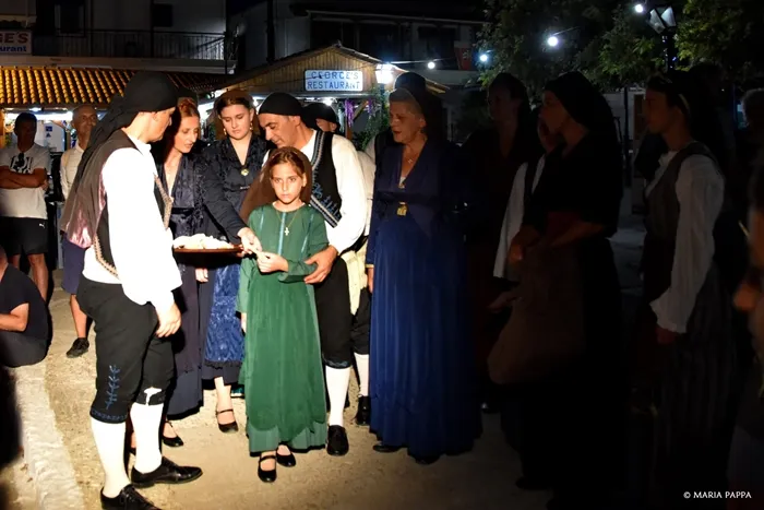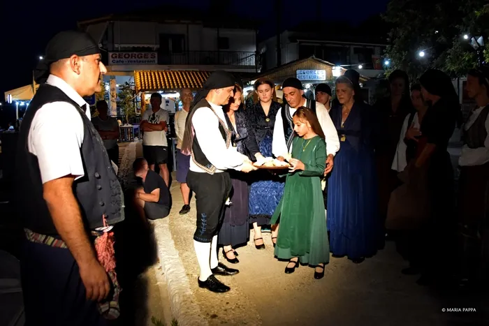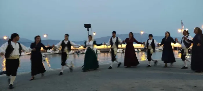 Οι εκδηλώσεις, τις οποίες συντόνιζε εκ μέρους των συνδιοργανωτών η Γεωργία Ιωαννίδου, συνεχίστηκαν το βράδυ στο μικρό γραφικό λιμάνι του Καλάμου. Το πρώτο μέρος των εκδηλώσεων περιλάμβανε λευκαδίτικους χορούς από τον μουσικοφιλολογικό όμιλο «Ορφέας» Λευκάδος και το δεύτερο ένα συγκινητικό δρώμενο μέσα στη θάλασσα που εξιστορούσε την άφιξη και υποδοχή των Μεσολογγιτισών στον Κάλαμο. Το δρώμενο ήταν βασισμένο σε ηχογραφημένο κείμενο της Δέσποινας Κανελλή, με φωνές της Ζωζώς Στέλλιου και του Ανδρέα Τσολίγκα, μουσική επένδυση του μαέστρου Σπύρο Χολέβα και υλοποιήθηκε από ομάδα του Ναυτικού Ομίλου που την αποτελούσαν η Ελένη Κοντονάσιου, οι θυγατέρες της Πολυτίμη και Μαρία και ο πλοίαρχος του εμπορικού ναυτικού Θανάσης Γιαννιώτης.