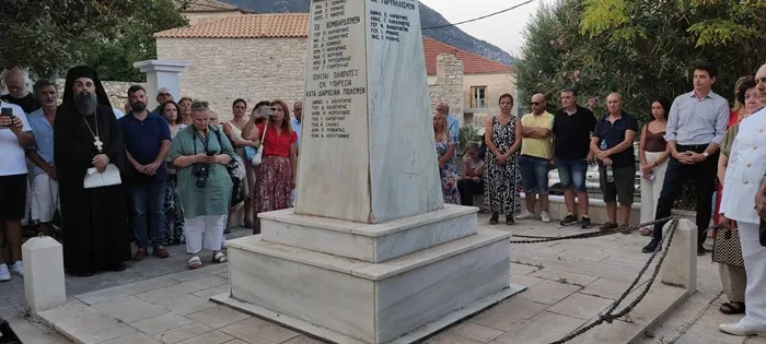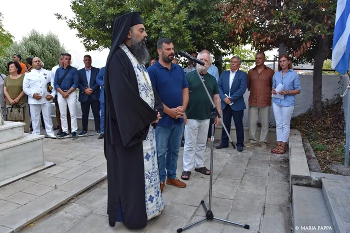 Το πρόγραμμα ξεκίνησε το απόγευμα του Σαββάτου με επιμνημόσυνη δέηση που τέλεσε ο αρχιμανδρίτης π. Σπυρίδων Μπούρης, μπροστά στο περικαλλές μνημείο το οποίο έχουν αναγείρει στο Ηρώον των πεσόντων του νησιού οι συνδιοργανωτές πολιτιστικοί φορείς δια χειρός του εικαστικού επιμελητή της «Διεξόδου» Βαγγέλη Ρόμπολα.