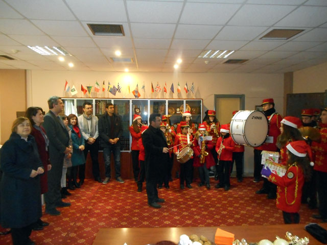 Σήμερα το πρωί τα κάλαντα έψαλλαν στο Δημαρχείο η Φιλαρμονική του Συλλόγου «ΣΚΟΥΦΑΣ» και η μπάντα του ΚΕΝ Άρτας