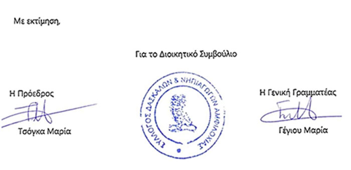 Παράλληλα, το Δ.Σ. του Συλλόγου Δασκάλων & Νηπιαγωγών αναλαμβάνει πρωτοβουλία για σειρά επαφών με τον κ. Δήμαρχο Αμφιλοχίας και τους Συλλόγους Γονέων και Κηδεμόνων .