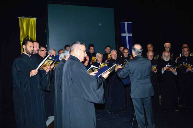Ακολούθησε η χορωδία του Συλλόγου Ιεροψαλτών Μεσολογγίου «ΑΡΧΙΔΙΑΚΟΝΟΣ ΑΝΘΙΜΟΣ», υπό την διεύθυνση του κ. Ιωάννου Δακαλάκη, η οποία απέδωσε εκκλησιαστικούς ύμνους, τόσο της εορτής των Εισοδίων της Θεοτόκου, όσο και του αγίου Κοσμά του Αιτωλού.