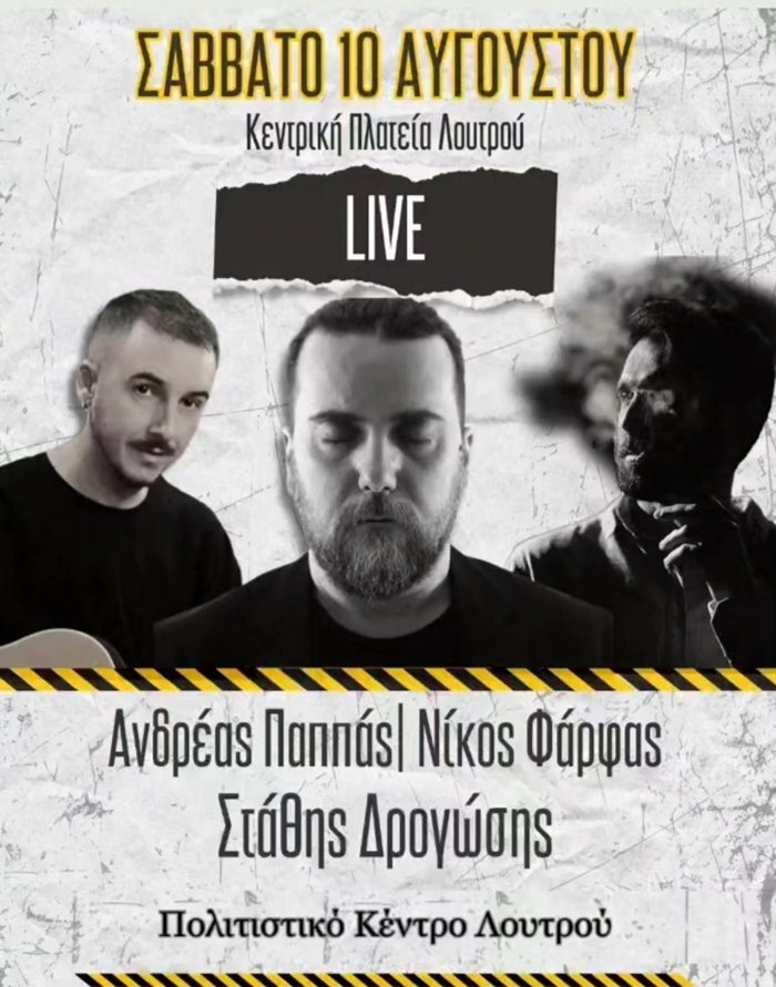 Την Πέμπτη 8, Παρασκευή 9 και Σάββατο 10 Αυγούστου το πολιτιστικό κέντρο Λουτρού θα πραγματοποιήσει τριήμερες πολιτιστικές εκδηλώσεις με τις οποίες κορυφώνεται η καλοκαιρινή πολιτιστική του δραστηριότητα που ξεκίνησε στις 26 Ιουνίου.