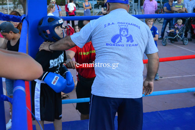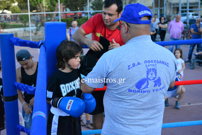 Ο προπονητής του ΠΓΣ Αμφιλοχίας Π. Ντουμάζιος κατάφερε να γεμίσει κι αυτό το Σαββατοκύριακο με κόσμο την παραλία της Αμφιλοχίας. Αγώνες Πυγμαχίας μεταξύ των ακαδημιών Πυγμαχικού Γυμναστικού Συλλόγου Αμφιλοχίας και Α.Σ. Άρης Θεσσαλονίκης πραγματοποιήθηκαν το Σάββατο, στο χώρο του μπάσκετ στο λιμάνι Αμφιλοχίας. Οι ακαδημίες των δύο ομάδων έδωσαν αγώνες επίδειξης και εντυπωσίασαν τους παρευρισκόμενους με τις ικανότητές τους. Οι μικροί αθλητές του Α.Σ. Άρη έφθασαν στην Αμφιλοχία με τους συνοδούς τους το Σάββατο και παρέμειναν μέχρι την Κυριακή. Στην εκδήλωση συμμετείχε με δύο αθλητές και ο Σ.Β.Α. Πολυδάμας Άρτας.