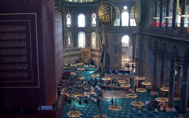 Άνοιξαν στις 10 το πρωί οι πόρτες στην Αγία Σοφία, το μνημείο παγκόσμιας εμβέλειας που από σήμερα λειτουργεί ως τζαμί και όπου θα γίνει το μεσημέρι η πρώτη μουσουλμανική προσευχή.