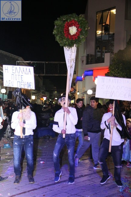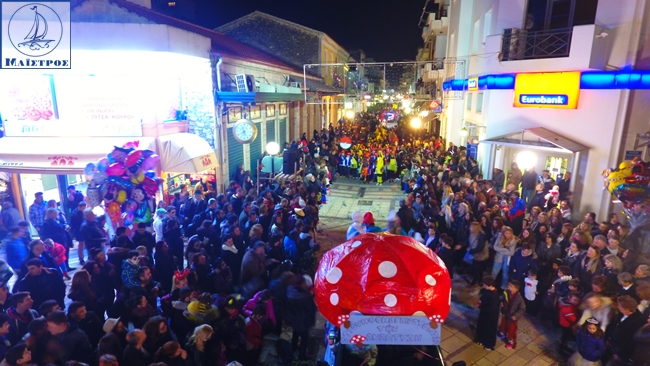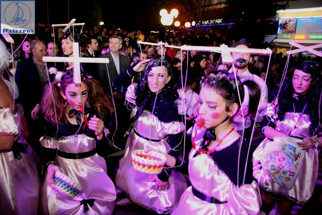 Η παρέλαση με τα 24 γκρουπ, τα 14 άρματα και τις ομάδες μεταμφιεσμένων πραγματοποιήθηκε στον κεντρικό πεζόδρομο Ν. Σκουφά με μεγάλη συμμετοχή.