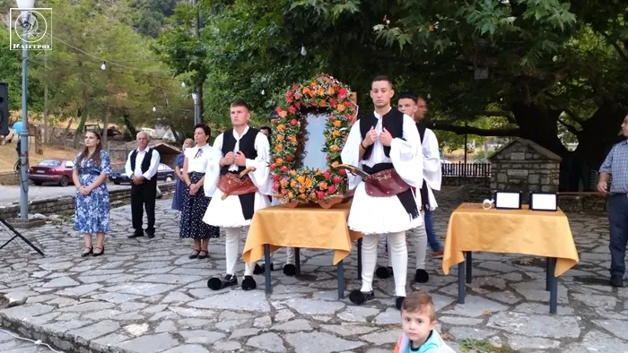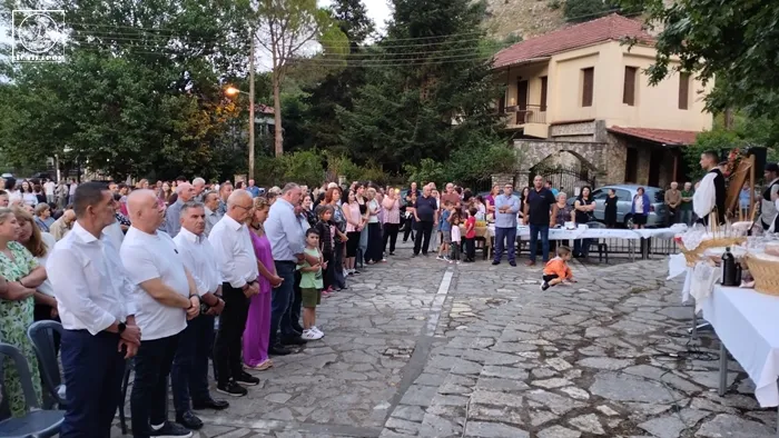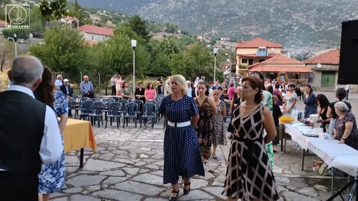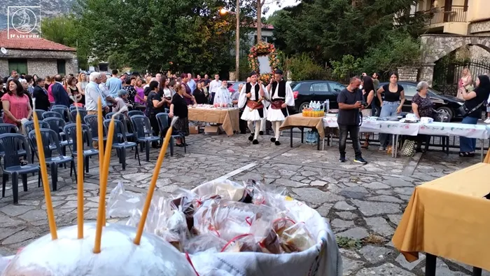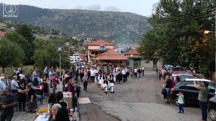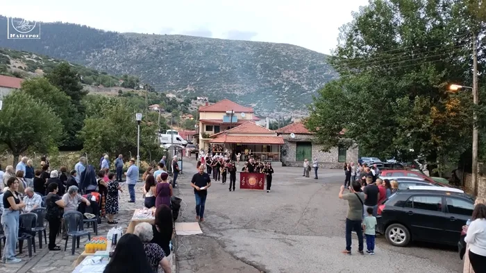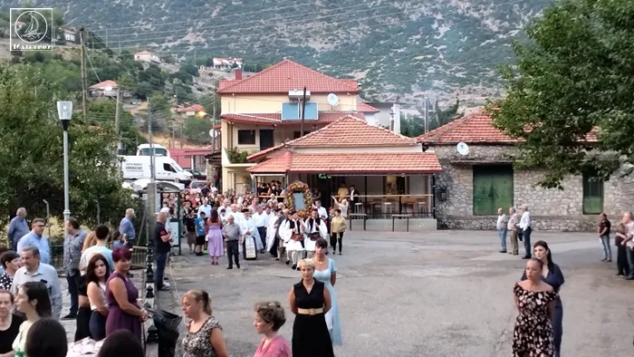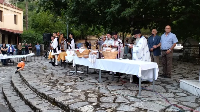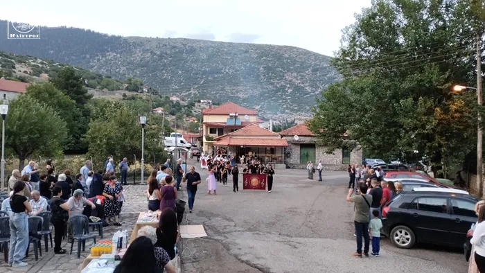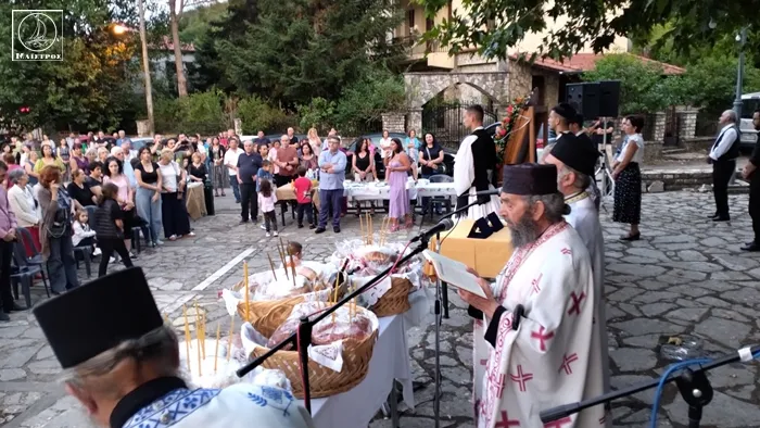 Αμέσως μετά τον Εσπερινό, ακολούθησε η λιτανεία της εικόνας και των ιερών λειψάνων της Αγίας. Η πομπή, με την ενεργή συμμετοχή των πιστών, διέσχισε τα σοκάκια του χωριού, δημιουργώντας μια ατμόσφαιρα κατάνυξης και πνευματικής ανάτασης. Η πομπή κατέληξε στην κεντρική πλατεία, όπου τελέστηκε δέηση μετ’ αρτοκλασίας.