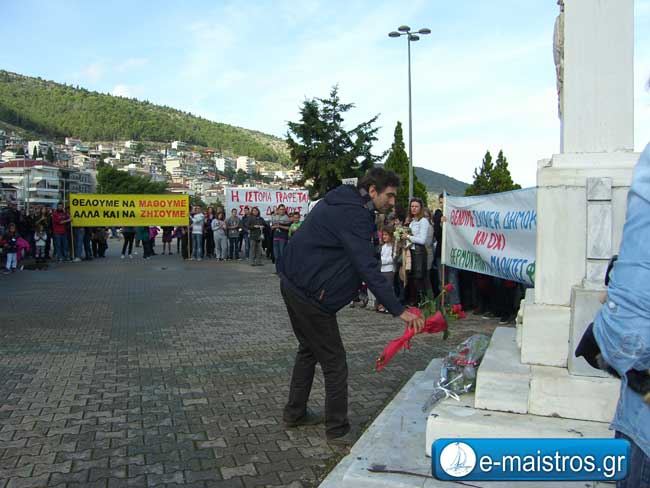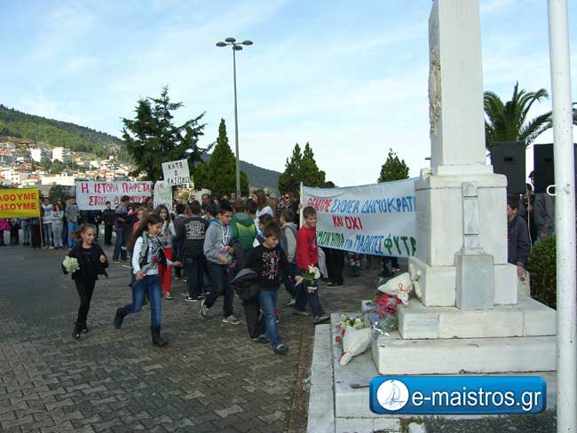 41η επέτειο σήμερα για τον εορτασμό της εξέγερσης των φοιτητών του Πολυτεχνείου και τα σχολεία της Αμφιλοχίας τίμησαν με τις πρέπουσες εκδηλώσεις την ημέρα αυτή. Σύσσωμος ο μαθητικός κόσμος πραγματοποιώντας την καθιερωμένη πορεία από τα σχολεία μέχρι την κεντρική πλατεία, κρατώντας πανώ με συνθήματα : «Κάτω ο φασισμός», «Η ιστορία γράφεται στους δρόμους», «Θέλουμε να μάθουμε αλλά και να ζήσουμε», «Θέλουμε σχολεία δημοκρατικά και όχι θερμοκήπια για μαθητές φυτά», κατέθεσαν λουλούδια και στεφάνια στο μνημείο των ηρώων. Επιπλέον στεφάνια και λουλούδια κατέθεσαν εκπρόσωπος του Δήμου Αμφιλοχίας, καθηγητές, εκπρόσωποι κομμάτων, φορείς της πόλης.