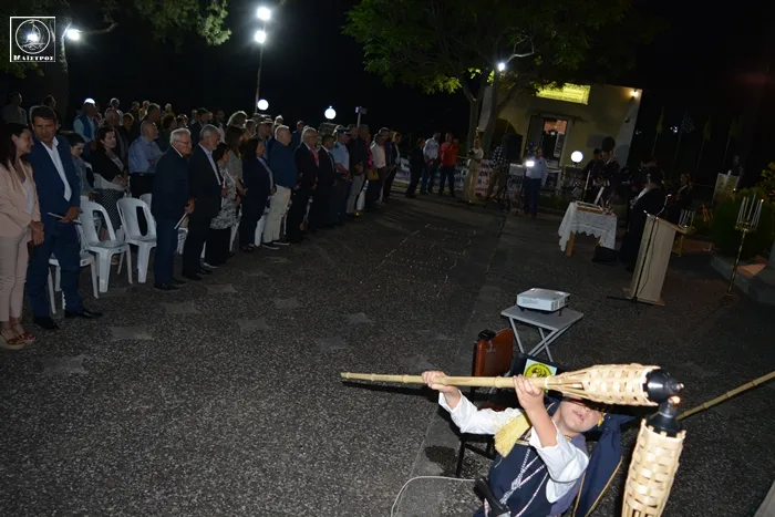 Η εκδήλωση ξεκίνησε με λαμπαδηδρομία στον κεντρικό δρόμο του χωριού, συνοδευόμενη από τη Δημοτική Φιλαρμονική Αμφιλοχίας, η οποία κατέληξε στην πλατεία του χωριού, όπου πραγματοποιήθηκε επιμνημόσυνη δέηση.