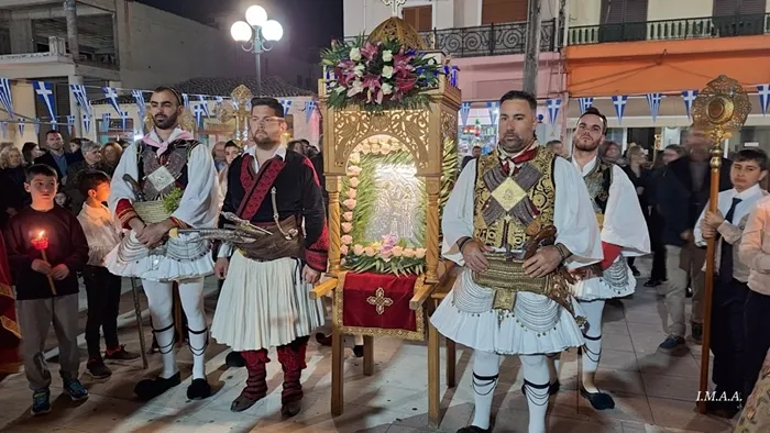 Ακολούθησε η λιτάνευση της Ιεράς Εικόνας της Θεοτόκου στους δρόμους του Νεοχωρίου. Στην κεντρική πλατεία τελέσθηκε δέηση και ο Σεβασμιώτατος απευθύνθηκε στους πιστούς, μιλώντας για την διπλή εορτή του Ευαγγελισμού της Θεοτόκου και της Εθνικής μας Παλιγγενεσίας λέγοντας ότι εμείς οι Έλληνες έχουμε το προνόμιο να συνεορτάζουμε τα μεγάλα γεγονότα της ιστορίας μας με τα μεγάλα γεγονότα της πίστεώς μας.