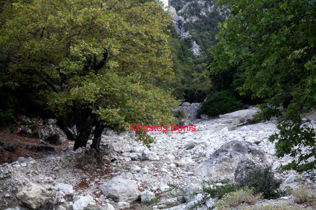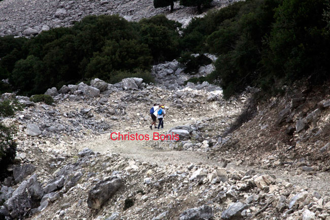 Μεγάλος σύμμαχος ήταν το ότι ο ήλιος δεν είχε κάνει ακόμη την εμφάνιση του… Ακλουθώντας μια διαδρομή πολλές φορές φοβερά δύσκολη από την μορφολογία του εδάφους αλλά και του δρόμου (αν μπορεί να χαρακτηριστεί δρόμος) όπου δεξιά και αριστερά της διαδρομής διέκρινες τον άδειο από νερό πόταμο (ξεροπόταμος το καλοκαίρι) με τις διαφορετικού χρώματος πέτρες οι οποίες ήταν το διαχωριστικό μέρος από τον υποτιθέμενο δρόμο που διανύαμε εμείς που ,όπως μου ανέφεραν κάποιοι από τους συνοδοιπόρους τον χειμώνα έχει φουλ νερό προερχόμενο από πήγες των Ακαρνανικών Όρεων. Συνεχίζαμε να ‘σκαρφαλώνουμε’ , αδημονώντας να βρούμε έστω και δέκα μέτρα ευθεία!!!!.