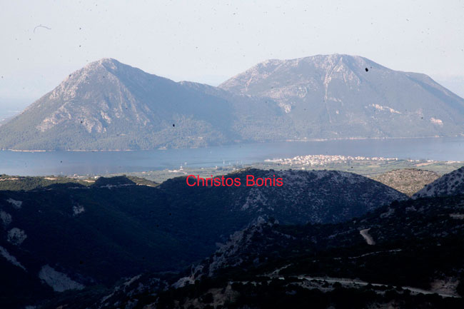 Στα μισά της διαδρομής (και λέω μισά διότι μονό όταν φτάσαμε στον προορισμό κατάλαβα ότι ήταν τα μισά) η στάση ολίγων λεπτών ήταν απαραίτητη αφ’ ενός μεν να δροσιστούμε και να ανακτήσουμε κάποιες δυνάμεις αφ ’ετέρου να θαυμάσουμε την ομορφιά που βλέπαμε στο βάθος του ορίζοντα τα δυο νησάκια Καστός και Κάλαμος και στο βάθος την Ιθάκη και τη Λευκάδα.