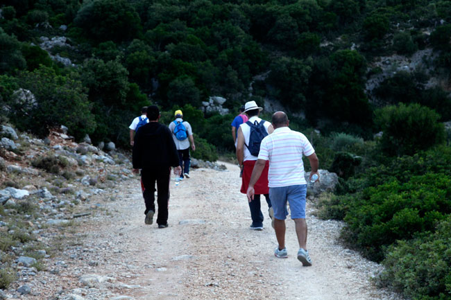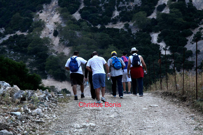 Τα πρώτα μέτρα (200 με 300 περίπου) ήταν ευχαρίστα διότι το τοπίο που συναντούσες σε μάγευε, αλλά η συνέχεια άρχισε να γίνετε λίγο δύσκολη διότι η ορειβασία (όπως έξαλλου το λέει και η λέξη) ήταν μια δύσβατη ανηφοριά…Διανύοντας το πρώτο χιλιόμετρο άλλοι με καλύτερη φυσική κατάσταση (και λόγο ηλικίας) άλλοι με λιγότερο καλή δεν είχαμε και μεγάλες αποστάσεις, ήμασταν σχεδόν μαζί. Ο προορισμός όμως είχε πολύ δρόμο ακόμη….