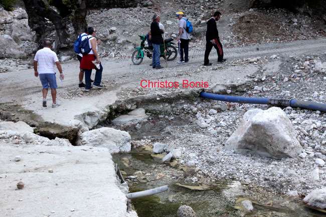 Έτσι κάτω από αφόρητη ζέστη (ήδη η ώρα ήταν 1.30 μμ) με τον ήλιο σχεδόν πάνω από τα κεφαλιά μας άρχισε το μαρτύριο του Γολγοθά. Όσο πιο ανώδυνη υπήρξε η άνοδος τόσο πιο επώδυνη ήταν η κάθοδος. Ευτυχώς που τα καπέλα και τα μπουκάλια του νερού μας έδιναν ελπίδες και ανακούφιση… Μετά από μια διαδρομή πενήντα λεπτών περίπου είδαμε από μακριά την όαση.