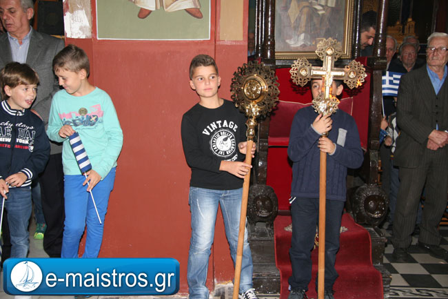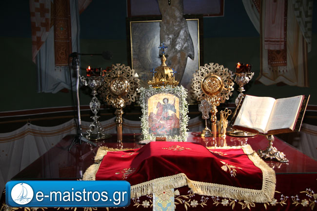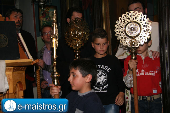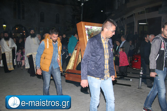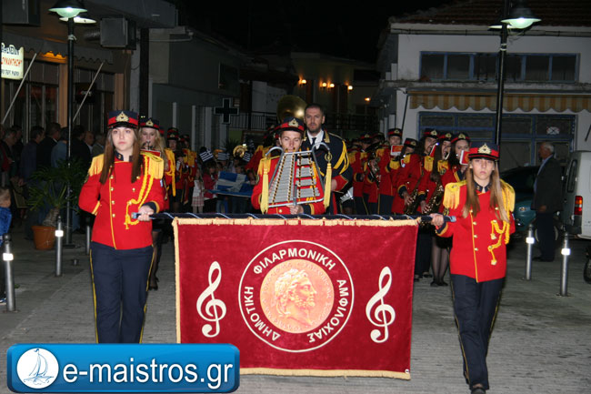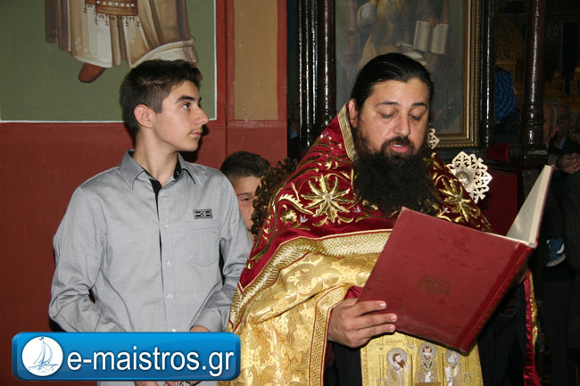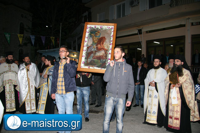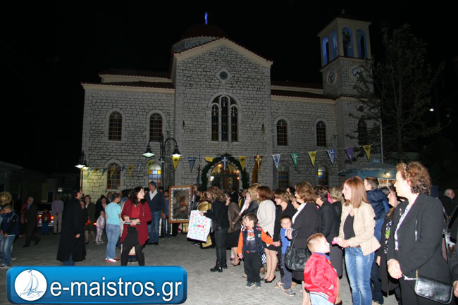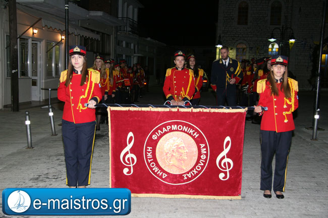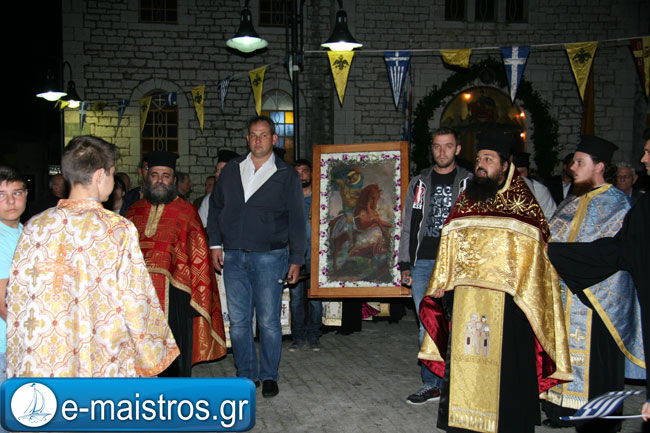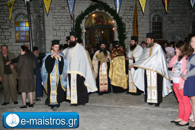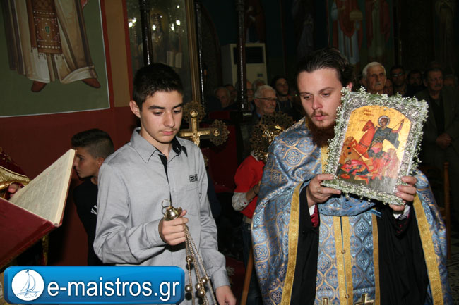 Την Ακολουθία του Εσπερινού παρακολούθησε με θρησκευτική κατάνυξη και ευλάβεια πλήθος πιστών και κληρικών, κατακλύζοντας το χώρο της Εκκλησίας. Εν συνεχεία, και υπό τους ήχους της Φιλαρμονικής Μπάντας του Δήμου Αμφιλοχίας, πραγματοποιήθηκε η μεγαλοπρεπής περιφορά της εικόνας του Αγίου.