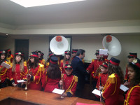 Τα κάλαντα των Χριστουγέννων άκουσε από τη Φιλαρμονική του Δήμου Αμφιλοχίας υπό την διεύθυνση του μαέστρου Γιώργου Τσόγκα, ο Δήμαρχος Απόστολος Κοιμήσης , παρουσία αιρετών και δημοτικών υπαλλήλων, σήμερα το πρωί στο Δημοτικό κατάστημα Αμφιλοχίας. Ο Δήμαρχος  χαιρέτησε τα παιδιά το κάθε ένα ξεχωριστά, αντάλλαξε μαζί τους ευχές, τους συνεχάρη για τις τελευταίες επιτυχίες και δεν παρέλειψε να ρίξει και τον χριστουγεννιάτικο μποναμά στον κουμπαρά της φιλαρμονικής.   Νωρίτερα η Φιλαρμονική του Δήμου,  σκόρπισε  χαρά και χαμόγελα στην πόλη της Αμφιλοχίας  περνώντας   από δρόμους και γειτονιές , έπαιξε  τα κάλαντα και Χριστουγεννιάτικα τραγούδια εντείνοντας τη γιορτινή ατμόσφαιρα των ημερών.