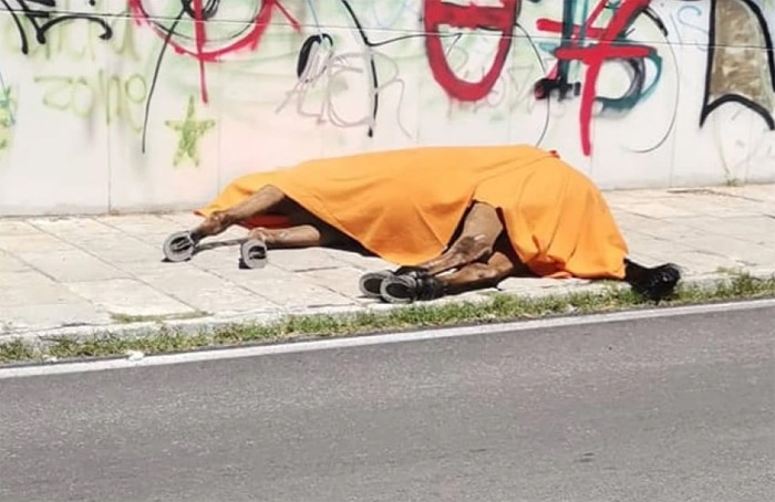 Αφού το άλογο κατέρρευσε, ο ιδιοκτήτης με τη βοήθεια συναδέλφων του προσπαθεί να το μεταφέρει σε φορτηγό. Περαστικοί που βρίσκοντας στο σημείο προσπάθησαν να παρέμβουν, Αμαξάδες διαπληκτίζονται και με ποδηλάτη και κινούνται απειλητικά εναντίον του.
