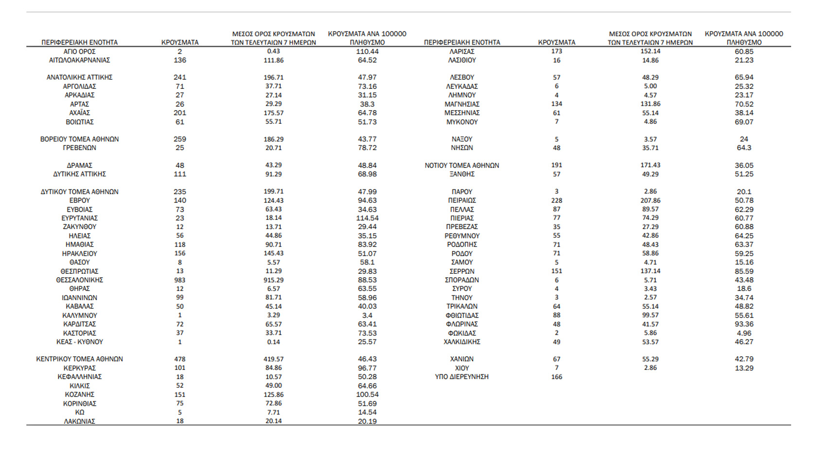 1 Με βάση τα επιβεβαιωμένα κρούσματα των τελευταίων 7 ημερών, 93