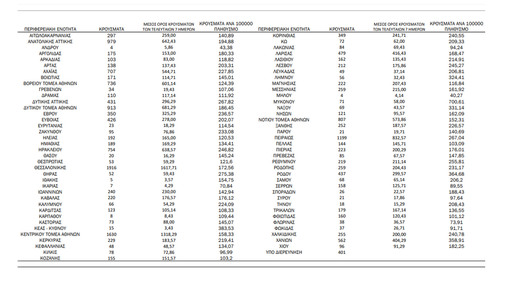 Τα νέα εργαστηριακά επιβεβαιωμένα κρούσματα της νόσου που καταγράφηκαν τις τελευταίες 24 ώρες είναι 19.712, εκ των οποίων 70 εντοπίστηκαν κατόπιν ελέγχων στις πύλες εισόδου της χώρας. Ο συνολικός αριθμός των κρουσμάτων ανέρχεται σε 1.867.935 (ημερήσια μεταβολή +1.1%), εκ των οποίων 49.8% άνδρες. Με βάση τα επιβεβαιωμένα κρούσματα των τελευταίων 7 ημερών, 380 θεωρούνται σχετιζόμενα με ταξίδι από το εξωτερικό και 1.113 είναι σχετιζόμενα με ήδη γνωστό κρούσμα.