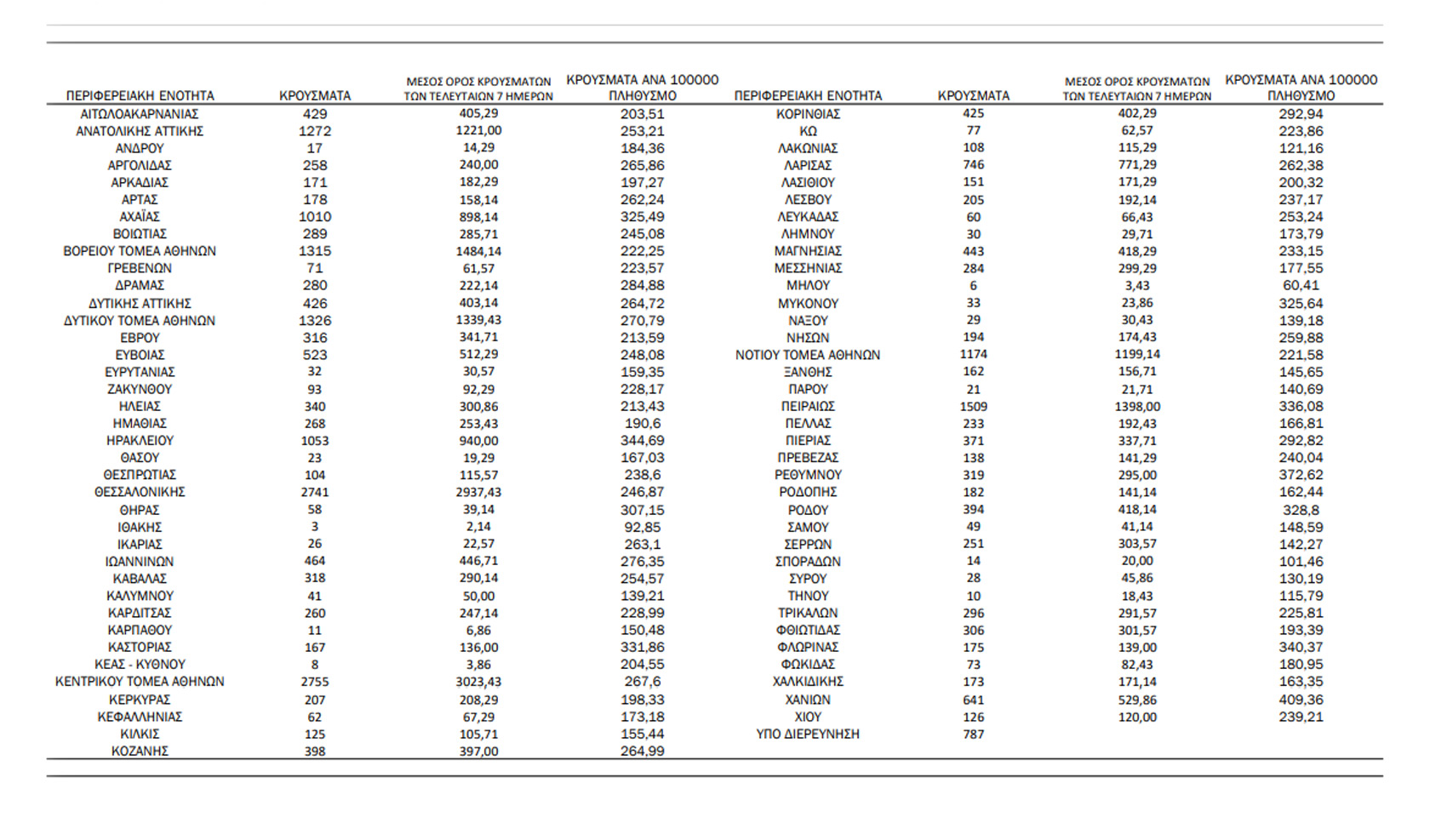 Κατανομή 27.766 σημερινών κρουσμάτων