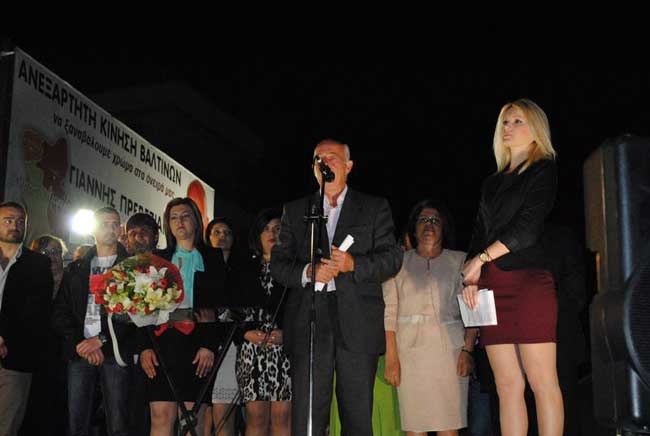 Με σιγουριά για τη νίκη εμφανίστηκε στην προεκλογική ομιλία του κ. Πρεβεζιάνος ο υποψήφιος δήμαρχος με το συνδυασμό «Ανεξάρτητη Κίνηση Βαλτινών». Σημαία της προεκλογικής του εκστρατείας, η αντιπαλότητα με την παρούσα δημοτική αρχή και η καυστική κριτική του για τα πεπραγμένα της. Ο κ. Πρεβεζιάνος, εξέφρασε την αναγκαιότητα αλλαγής στα δημοτικά πράγματα αλλά και εξυγίανσης των οικονομικών. Έκανε λόγο επίσης για τις θέσεις του προγράμματός του, αναφερόμενος σε υλοποίηση έργων ύδρευσης, χώρων στάθμευσης και πλατείας. Στο τέλος της ομιλίας του παρουσίασε τους υποψηφίους που πλαισιώνουν το συνδυασμό της Ανεξάρτητης Κίνησης Βαλτινών. Πριν την έναρξη της ομιλίας πομπή αυτοκινήτων που είχαν συγκεντρωθεί στην είσοδο της Αμφιλοχίας, διέσχισε παραλιακά την πόλη κορνάροντας μέχρι το σημείο της ομιλίας του υποψηφίου.