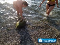 Τις τελευταίες τρείς μέρες, τις ακτές της Ανατολικής πλαζ, επισκέφτηκε μια Caretta-Caretta, που κουρασμένη και αβοήθητη κολυμπούσε με δυσκολία. Η Δήμητρα Κεχαγιά έχοντας το θάρρος την έβγαλε στην παραλία, για να της παρασχεθεί βοήθεια. Το Λιμενικό Σώμα που παρακολουθεί την κατάσταση, επιλήφθηκε του θέματος αλλά δεν χρειάστηκε να παρέμβει περαιτέρω για την περίθαλψή της μέχρι στιγμής. Οι προσπάθειες φροντίδας της βρίσκονται σε εξέλιξη καθώς η Caretta-Caretta παραμένει στην περιοχή της πλαζ.