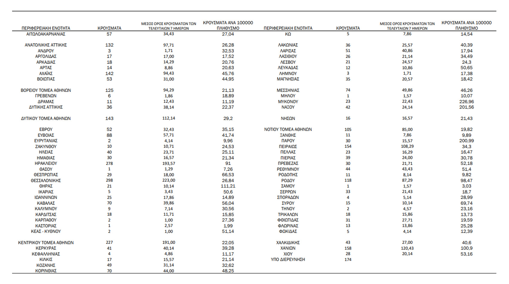 Αναλυτικά η διασπορά των νέων κρουσμάτων σήμερα στην υπόλοιπη Ελλάδα