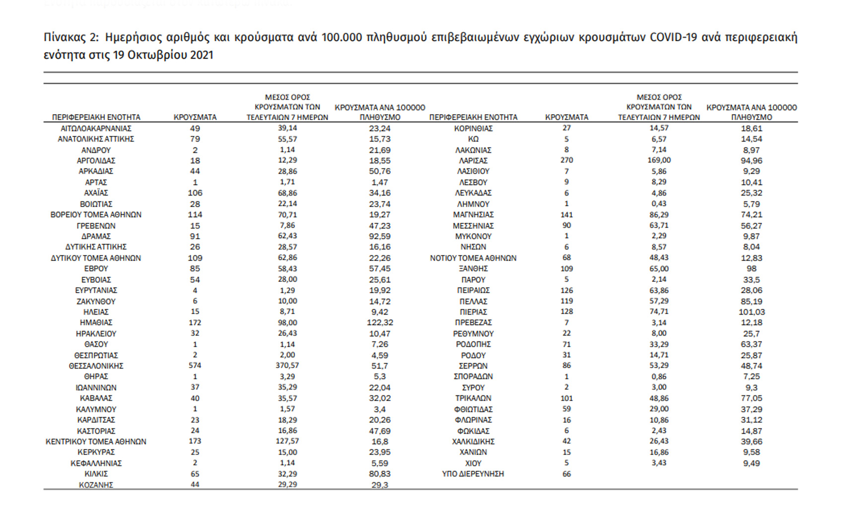 Ο συνολικός αριθμός των κρουσμάτων ανέρχεται σε 700.959 (ημερήσια μεταβολή +0.6%), εκ των οποίων 50.8% άνδρες. Με βάση τα επιβεβαιωμένα κρούσματα των τελευταίων 7 ημερών, 124 θεωρούνται σχετιζόμενα με ταξίδι από το εξωτερικό και 2.144 είναι σχετιζόμενα με ήδη γνωστό κρούσμα.