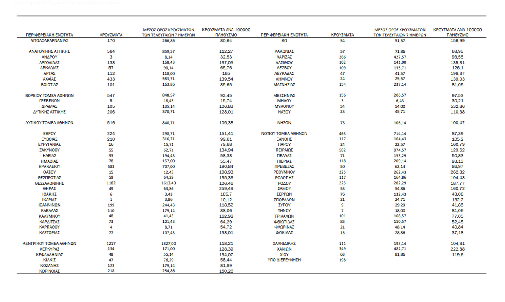 Αναλυτικά η έκθεση του ΕΟΔΥ για τα κρούσματα σήμερα Κυριακή (23/1) – Πού εντοπίζονται