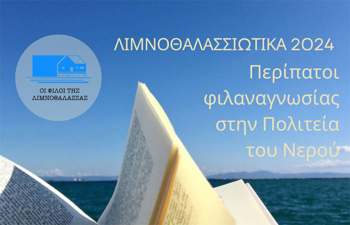 Οι «Φίλοι της Λιμνοθάλασσας» και ο Δήμος Ιερής Πόλης Μεσολογγίου σας προσκαλούν στα «Λιμνοθαλασσιώτικα 2024 – Περίπατοι φιλαναγνωσίας στην Πολιτεία του Νερού», από τις 9 Σεπτεμβρίου έως τις 15 Σεπτεμβρίου 2024.Το πλήρες πρόγραμμα των εκδηλώσεων περιλαμβάνει καθημερινές δράσεις και εκδηλώσεις και έχει ως εξής: