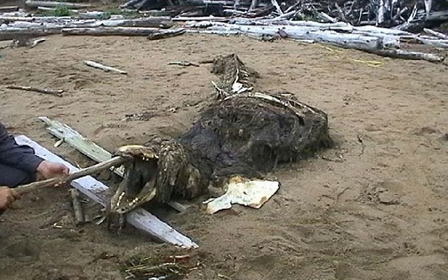 Το 2006 Ρώσοι στρατιώτες φωτογράφισαν τον σκελετό ενός τεράστιου ζώου που ξεβράστηκε στις ακτές του νησιού Σαχαλίνα στην ανατολική Ρωσία. Το «τέρας» είχε μήκος είκοσι μέτρα και από ό,τι φαινόταν στο δέρμα του πρέπει να είχε γούνα ή τρίχες.