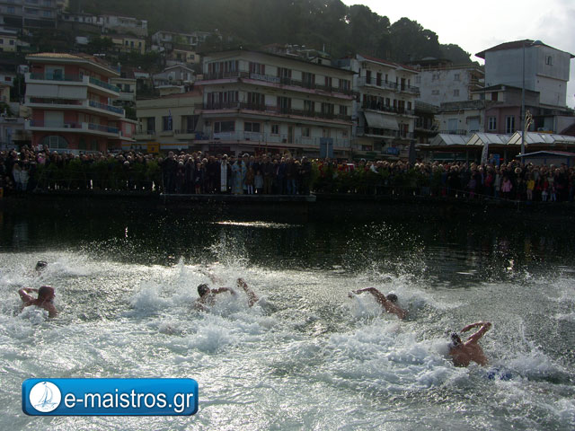 Ημέρα εορτασμού των Άγιων Θεοφανείων σήμερα και στην Αμφιλοχία τελέστηκε η ακολουθία του Μεγάλου Αγιασμού με τις αρχές να βρίσκονται στον ενοριακό ναό του Αγίου Αθανασίου με παρουσία πλήθος κόσμου που παρέλαβε τον καθιερωμένο Αγιασμό. Ευθύς μετά το πέρας της Λειτουργίας, ο κόσμος μεταφέρθηκε στην κεντρική πλατεία της πόλης όπου πραγματοποιήθηκε η κατάδυση του Ιερού Σταυρού στα νερά του Αμβρακικού από τον πάτερ Οδυσσέα. Η θερμοκρασία άγγιζε τους 18 βαθμούς και οι τολμηροί που βούτηξαν στα παγωμένα νερά για την ανέλκυση του Σταυρού δεν δυσκολεύτηκαν ιδιαίτερα. Τυχερός για δεύτερη φορά ήταν ο Θεόδωρος Μολώνης ο οποίος ανέσυρε το Σταυρό από τη θάλασσα.