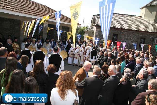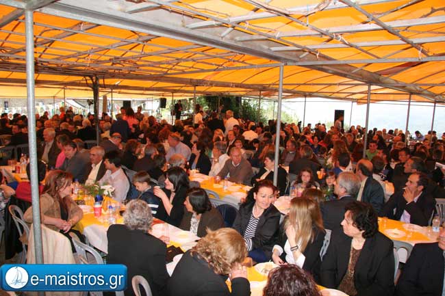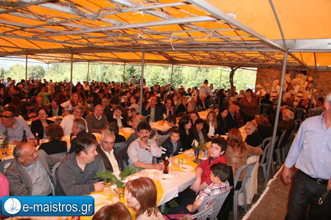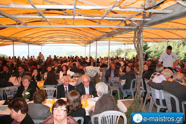 Με το πέρας της αρτοκλασίας, ακολούθησε γλέντι πλαισιωμένο με διάφορα εδέσματα, προσφορά των κατοίκων του χωριού, στον προαύλιο χώρο της εκκλησίας. Την εκδήλωση άνοιξε με χαιρετισμό η δημοτική σύμβουλος κ. Αριστέα Μάλλιου καλωσορίζοντας τους παρευρισκόμενους και στη συνέχεια, τα χρόνια πολλά ευχήθηκε ο δήμαρχος Απ. Κοιμήσης.