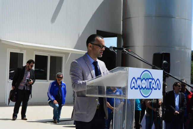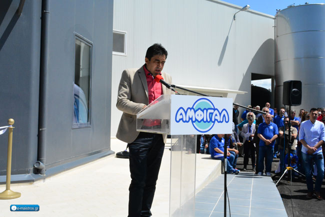 Τελευταίος στο βήμα ανέβηκε ο κύριος Κουτσουπιάς εμπνευστής και χαλκέντερος εργάτης της ΑΜΦΙΓΑΛ. Στην ομιλία του ο πρόεδρος της Ένωσης Αγρινίου αναφέρθηκε στην αισιοδοξία του για το μέλλον της υπερσύγχρονης γαλακτοκομικής μονάδας και στη σπουδαιότητα των συνεταιρισμών για την αναζωογόνηση της τοπικής οικονομίας «Στόχος μας είναι να γίνει η ΑΜΦΙΓΑΛ το όχημα εκσυγχρονισμού συνολικά για τον κλάδο, να αλλάξουμε τη μοίρα του τόπου» τόνισε. Δεν παρέλειψε, ωστόσο, να σημειώσει πως για την καλή λειτουργία και απόδοση του έργου, θα πρέπει να διευθετηθούν σημαντικές εκκρεμότητες και, απευθυνόμενος στον περιφερειάρχη, τόνισε την ανάγκη πληρωμής των περίπου 1,4 εκατ. ευρώ που υπολείπονται, σημειώνοντας ταυτόχρονα ότι ο προϋπολογισμός του έργου υπερέβη κατά πολύ το εγκεκριμένο ποσό των 6,7 εκατ. ευρώ. Τέλος, ο κ. Κουτσουπιάς εξήγησε ότι φιλοδοξία της Ένωσης Αγρινίου και της ΑΜΦΙΓΑΛ είναι η δημιουργία ισχυρού brand name για την Αιτωλοακαρνανία, ο εκσυγχρονισμός της κτηνοτροφίας, η συνολική αναβάθμιση της τοπικής αγροτικής οικονομίας και κάλεσε τους πολίτες και δη τους κτηνοτρόφους να αγκαλιάσουν το έργο, τονίζοντας ότι ανήκει σε αυτούς και στο μέλλον τους.