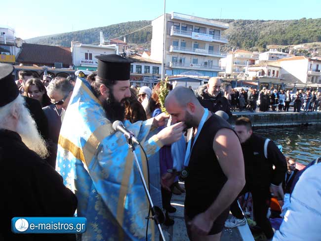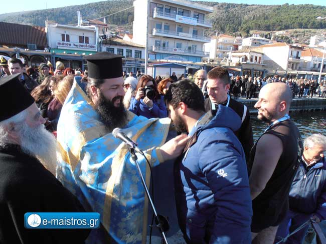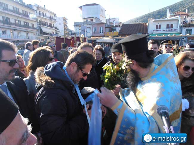 Ημέρα εορτασμού των Άγιων Θεοφανείων η σημερινή και στην Αμφιλοχία τελέστηκε η ακολουθία του Μεγάλου Αγιασμού με τις αρχές να βρίσκονται στον ενοριακό ναό του Αγίου Αθανασίου με παρουσία πλήθος κόσμου που παρέλαβε τον καθιερωμένο Αγιασμό. Ευθύς μετά το πέρας της Λειτουργίας, ο κόσμος μεταφέρθηκε στην κεντρική πλατεία της πόλης όπου πραγματοποιήθηκε η κατάδυση του Ιερού Σταυρού στα νερά του Αμβρακικού από τον πάτερ Οδυσσέα. Παρά τις χαμηλές θερμοκρασίες (+4) υπήρξαν και οι τολμηροί που βούτηξαν στα παγωμένα νερά για την ανέλκυση του Σταυρού. Τυχερός για άλλη μια φορά ήταν ο Γιώργος Καλαμπαλίκης οποίος ανέσυρε το Σταυρό από τη θάλασσα. Ο εορτασμός επισφραγίστηκε με την απόδοση τιμών από εκκλησιαστικό συμβούλιο του Αγίου Αθανασίου στους επί σειρά ετών βουτηχτές. Στη θεία λειτουργία και στον αγιασμό των υδάτων παρευρέθησαν ο Δήμαρχος Αμφιλοχίας Απ. Κοιμήσης, ο αρχηγός μείζονος αντιπολίτευσης κ. Γιάννης Πρεβεζιάνος ο βουλευτής Αιτωλοακαρνανία κ. Μάριος Σαλμάς, οι Αντιδήμαρχοι, κ.κ. Γρ. Παπούλιας, Χ. Τσόλκας, πρόεδρος και αντιπρόεδρος ΔΣ ο κ. Γ. Σταμούλης και η κ. Σ. Ανδρίκουλα, πρόεδρος ΔΕΥΑΑ κ. Κ. Κοπίδης , πρόεδρος και αντιπρόεδρος ΚΕΚΑΔΑ η κ. Φ. Λαμπράκη και ο κ. Μάρκος Φουρλάνης, πρόεδρος τοπικής Κοινότητας κ. Απ. Γώγολος και δημοτικοί σύμβουλοι. Από τα Σώματα ασφαλείας, ο Διοικητής ΑΤ Αμφιλοχίας κ. Δημ. Ματσούκας, από την Τροχαία ο κ. Α. Ζαραϊδώνης, ο διοικητής του Λιμενικού Τμήματος Αμφιλοχίας Πλωτάρχης ΑΣ Ν. Μελιάδης και το προσωπικό του τμήματος, ο υποδιοικητής της Πυροσβεστικής Υπηρεσίας Αμφιλοχίας Πυραγός Ευστ. Τζέμος .
