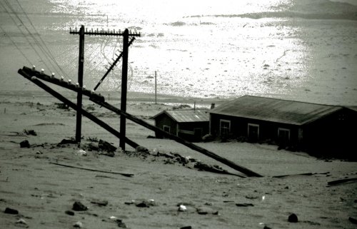 Σ’ όποιο κτίριο κι αν θα μπεις, άμμος πανδαμάτωρ όπως ο χρόνος έχει εισβάλει παντού, καλύπτοντας ξεχαρβαλωμένα πατώματα, στομώνοντας τα βγαλμένα μάτια των κουφωμάτων, στοιβαζόμενη πλάι στους ρημαγμένους τοίχους, στρώνοντας σάβανα πάνω στις τρύπιες στέγες και καταπίνοντας εν τέλει σιγά σιγά τα πάντα, την πολιτεία ολόκληρη με τα σπίτια της, τους κοιτώνες της, τα εργαστήρια της, τα γραφεία της, το καζίνο της…
