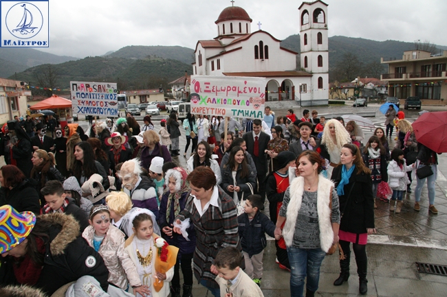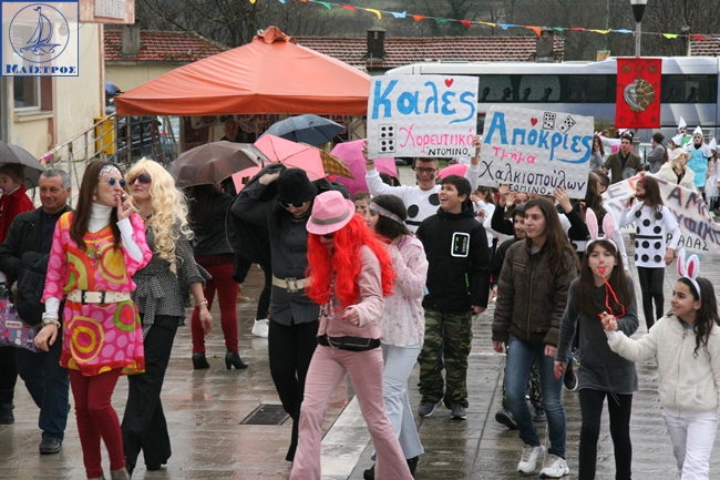 Οι άσχημες καιρικές συνθήκες στο Χαλκιόπουλο, δεν πτόησαν δεκάδες γκρουπ και καρναβαλιστές που αψήφησαν τη βροχή και την υγρασία και αποφάσισαν να πραγματοποιήσουν τελικά τις καρναβαλικές εκδηλώσεις που είχαν προγραμματιστεί για την πρώτη Κυριακή της Αποκριάς, έστω και με τις ομπρέλες στο χέρι. Η παρέλαση στο κεντρικό δρόμο στο Χαλκιόπουλο πάντως, δεν πραγματοποιήθηκε λόγω καταρρακτώδους βροχής που λειτούργησε ανασταλτικά, αλλά και μόνο η προσπάθεια των διοργανωτών, αξίζει πολλά συγχαρητήρια.