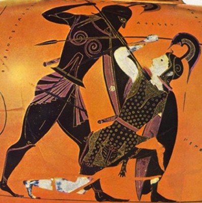 Ο Αχιλλέας σκοτώνει την Πενθεσίλεια.Έργο του Εξηκία.Ο αμφορέας χρονολογείται στο 535-530 π. Χ και βρίσκεται στο Βρετανικό Μουσείο