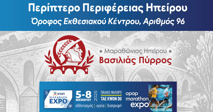Η Οργανωτική Επιτροπή του διοργάνωσης Μαραθώνιος Ηπείρου – Βασιλιάς Πύρρος ενημερώνει για την παρουσία της στην ΟΠΑΠ MARATHON EXPO 2025, φιλοξενούμενη στο περίπτερο της Περιφέρειας Ηπείρου (Αρ. Περιπτέρου 96).