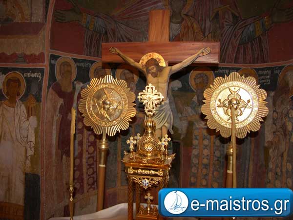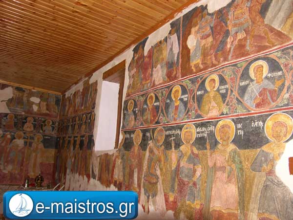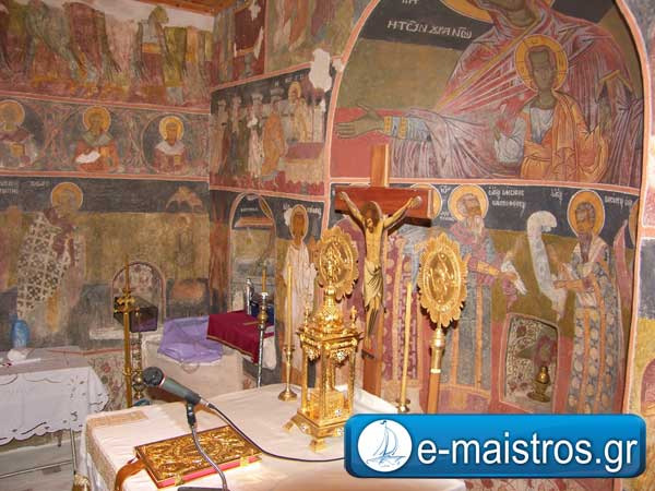 Ο Ναός είναι το μοναδικό κτίσμα που σώζεται σήμερα από το ερειπωμένο μεσαιωνικό χωριό της Αμβρακιάς. Σύμφωνα με τη σκαλιστή επιγραφή της εισόδου χτίστηκε το 1680 και ήταν απ’ άκρη σ’ άκρη γεμάτος με τοιχογραφίες της ίδιας εποχής οι οποίες έπαθαν μεγάλη ζημιά από τα ασβεστοχρίσματα και την υγρασία. Τα δείγματα όμως του αγιογράφου που σώζονται είναι αρκετά για να δείξουν ότι επρόκειτο για έναν από τους δοκιμότερους ζωγράφους του 17ου αιώνα στην περιοχή. Η πλατυτέρα στον τύπο της Βλαχερνίτισσας με το Χριστό ως την μέση που ευλογεί και με τα δύο χέρια, στο τετρατοσφαίριο της κόγχης, καθώς και ο Χριστός μόνος στην Άκρα Ταπείνωση και ο Φτερωτός Ιησούς Χριστός ως Μεγάλης Βουλής Άγγελος στην κόγχη του διακονικού, φανερώνουν την εκφραστική δύναμη του ζωγράφου.