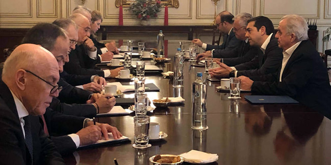 Στη συνάντηση συμμετείχαν εκ μέρους της κυβέρνησης και ο αντιπρόεδρος της κυβέρνησης και υπουργός Οικονομίας, Γιάννης Δραγασάκης, ο υπουργός Επικρατείας, Αλέκος Φλαμπουράρης, και ο υφυπουργός παρά τω πρωθυπουργώ, Δημήτρης Λιάκος.