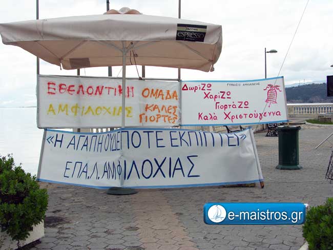 Με τη συγκέντρωση τροφίμων από νωρίς το πρωί ξεκίνησαν οι δράσεις στην κεντρική πλατεία της Αμφιλοχίας. . Η συμμετοχή του κόσμου στο κάλεσμα ήταν παραπάνω από ικανοποιητική και η συγκέντρωση τροφίμων και ειδών πρώτης ανάγκης παραπάνω από αναμενόμενη. Στην πρωτοβουλία αυτή της Εθελοντικής Ομάδας Αμφιλοχίας συμμετέχουν το ΓΕΛ το ΕΠΑΛ , το Γυμνάσιο, τα Δημοτικά σχολεία, ο Σύλλογος Πολυτέκνων «Ο Άγιος Αθανάσιος», και η Εκκλησία του Αγίου Αθανασίου με το κοινωνικό παντοπωλείο. Η συγκέντρωση τροφίμων και ειδών πρώτης ανάγκης θα ολοκληρωθεί αύριο το απόγευμα. Παρόν στη δράση των εθελοντών και ο Άγιος Βασίλης, που μπορεί να μην ήρθε από τη Φινλανδία αλλά προσθέτει κι αυτός χαρούμενες εικόνες στο εορταστικό κλίμα της πλατείας. Το απόγευμα καιρού επιτρέποντος, θα πραγματοποιηθούν στον ίδιο χώρο εκδηλώσεις από το Πολιτιστικό Κέντρο Αμφιλοχίας.