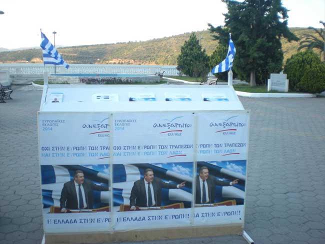 Περίπτερο με ενημερωτικό προεκλογικό υλικό τοποθέτησαν  στελέχη του κινήματος των «Ανεξάρτητων Ελλήνων» από τις  21 Μαΐου  έως και την Κυριακή 25 Μαΐου στην πλατεία της Αμφιλοχίας. Στο anell3περίπτερο οι περαστικοί και  οι ενδιαφερόμενοι  μπορούσαν  να  παραλάβουν ενημερωτικά φυλλάδια, τόσο του κινήματος όσο και των υποψηφίων Ευρωβουλευτών.