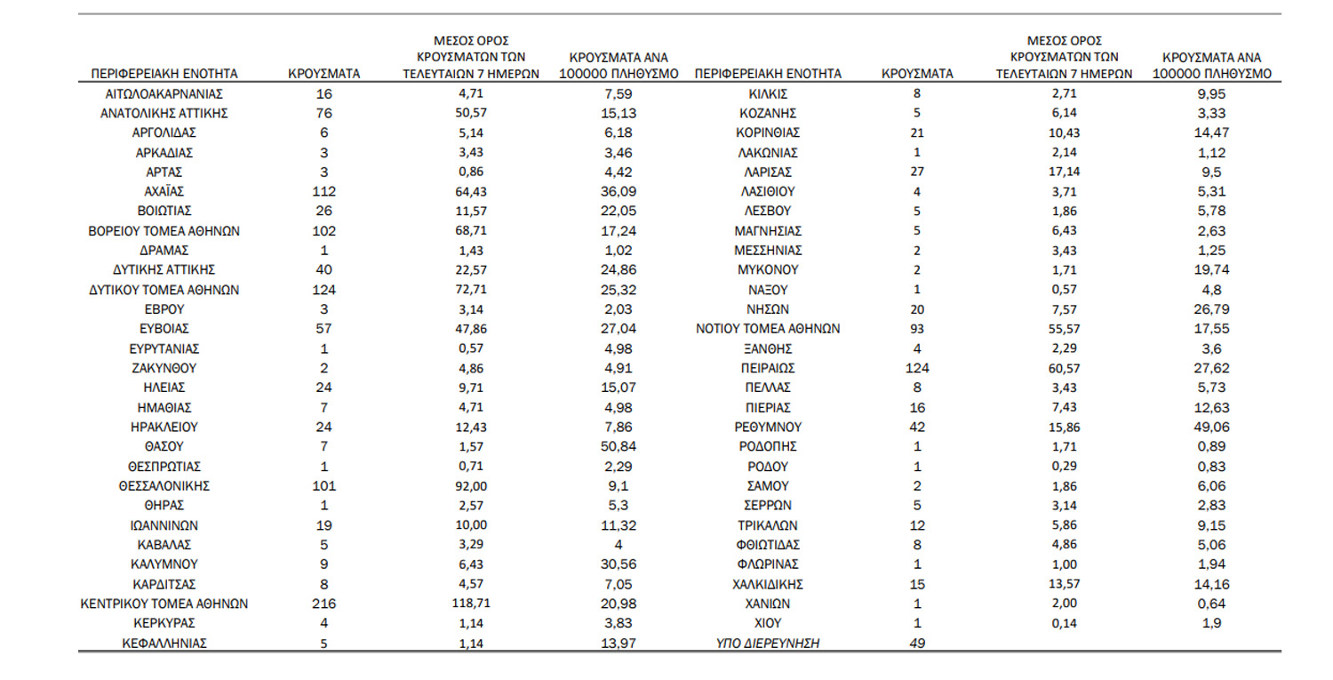 Που εντοπίζονται τα σημερινά κρούσματα